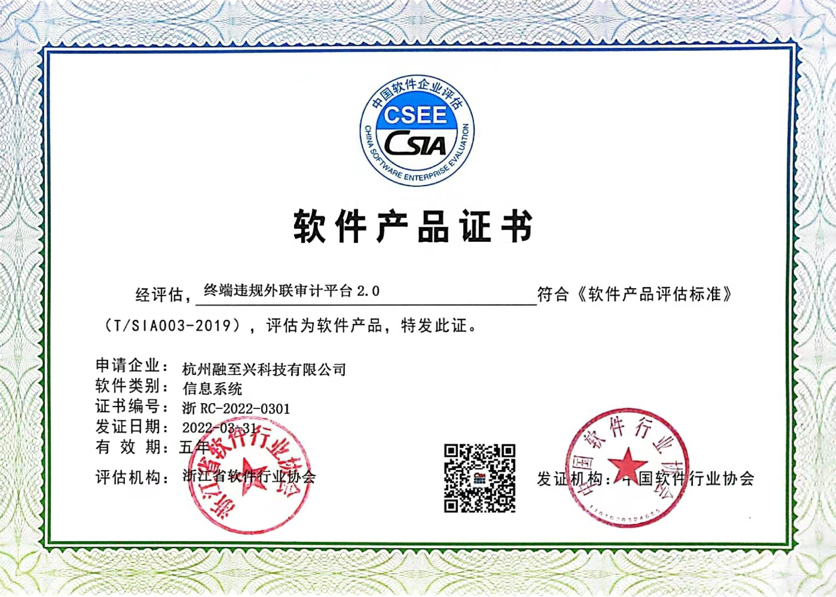 公司通过了ISO9001、ISO14001、ISO45001、 ISO27001认证,3A级企业信用等级,是浙江省科技型中小企业,浙江省双软企业,2021年杭州市“雏鹰计划”企业,浙江省软件协会员单位,公司拥有多项发明专利及自主知识产权软件产品。