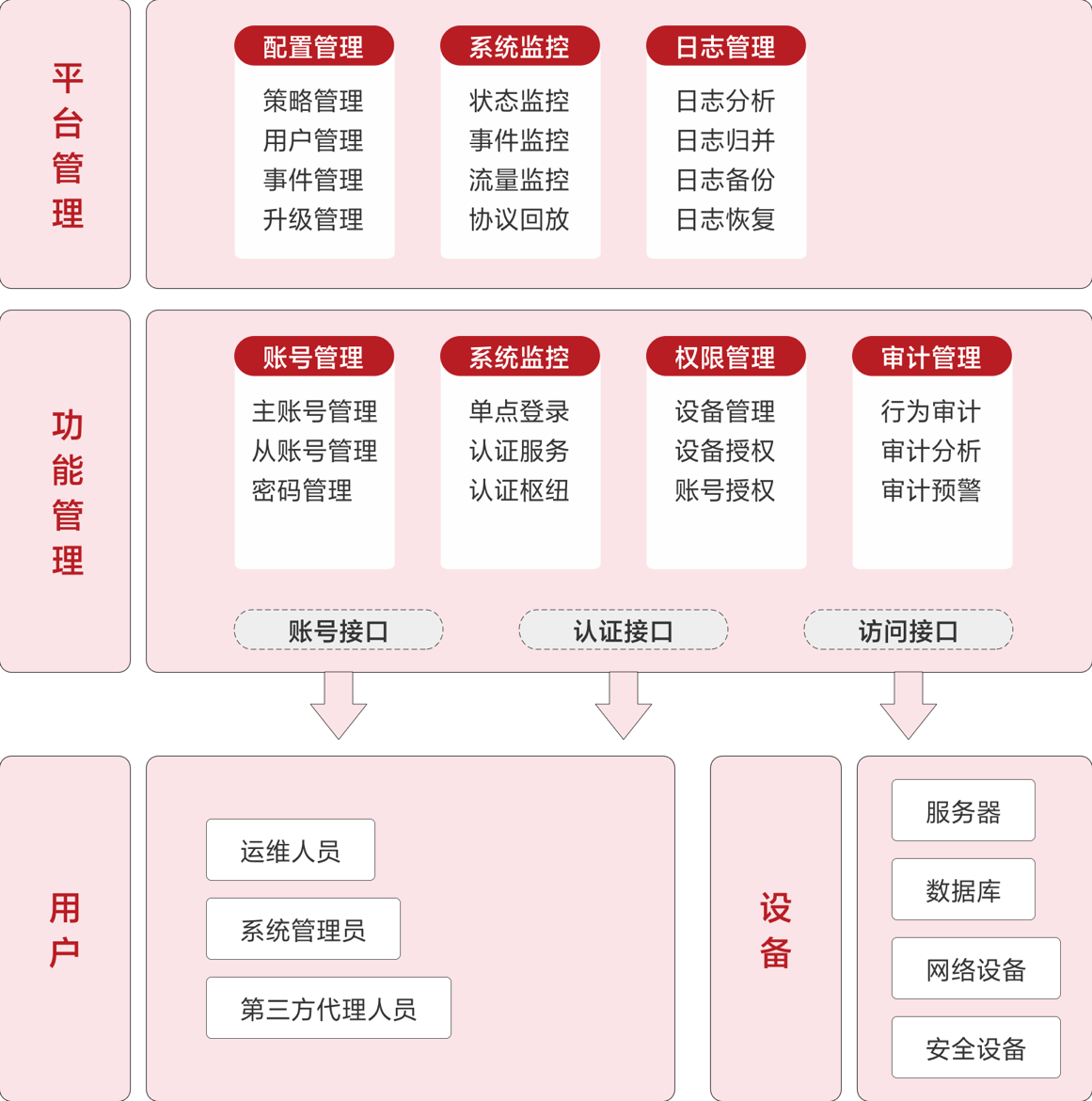 为满足用户对加强内部运维安全日益迫切的需要,融至兴依托自身强大的研发能力,丰富的行业经验,自主研发的新一代安全运维系统,能够对运维人员维护过程进行全面跟踪、控制、记录、回放;支持细粒度配置运维人员的访问权限,实时阻断违规、越权的访问行为,同时提供维护人员操作的全过程的记录与报告;系统支持对加密与图形协议进行审计,消除了传统行为审计系统中的审计盲点,是IT系统内部控制最有力的支撑平台。对运维过程三个阶段进行严格管控: 事前预防:建立“自然人-资源-资源账号”关系,实现统一认证和授权; 事中控制:建立“自然人-操作-资源”关系,实现操作审计和控制; 事后审计:建立“自然人-资源-审计日志”关系,实现事后溯源和责任界定。